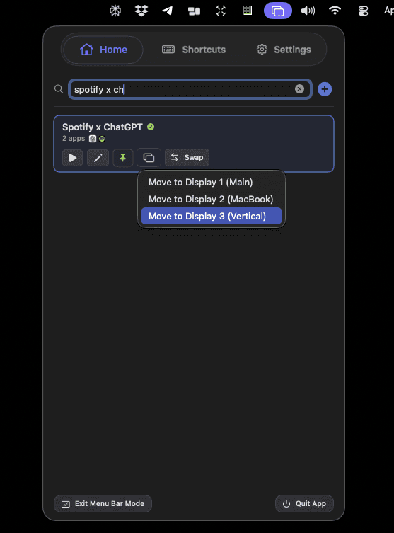 My Spotify and ChatGPT layout instantly restores back to my vertical monitor.
