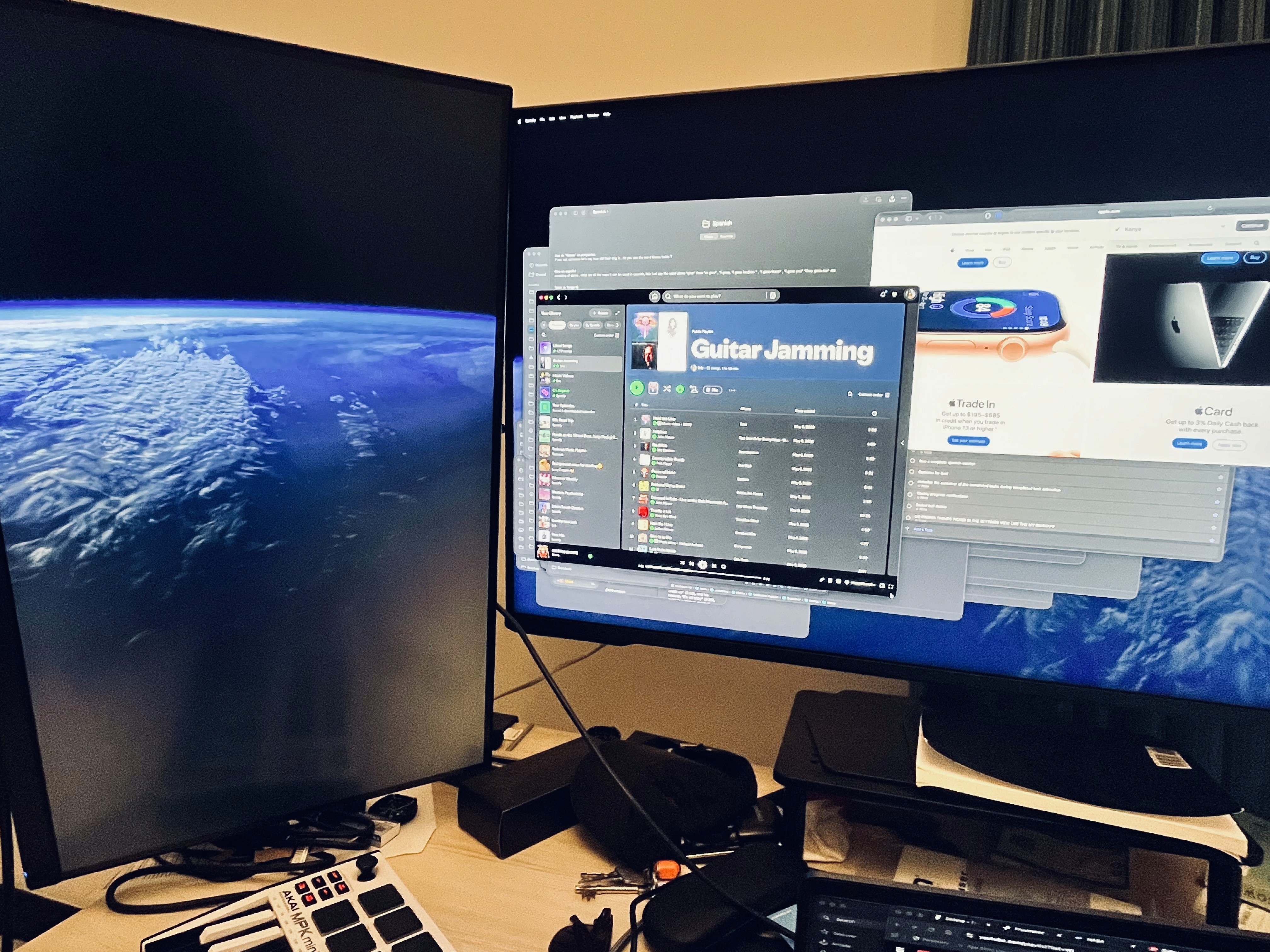 Windows are scattered across screens